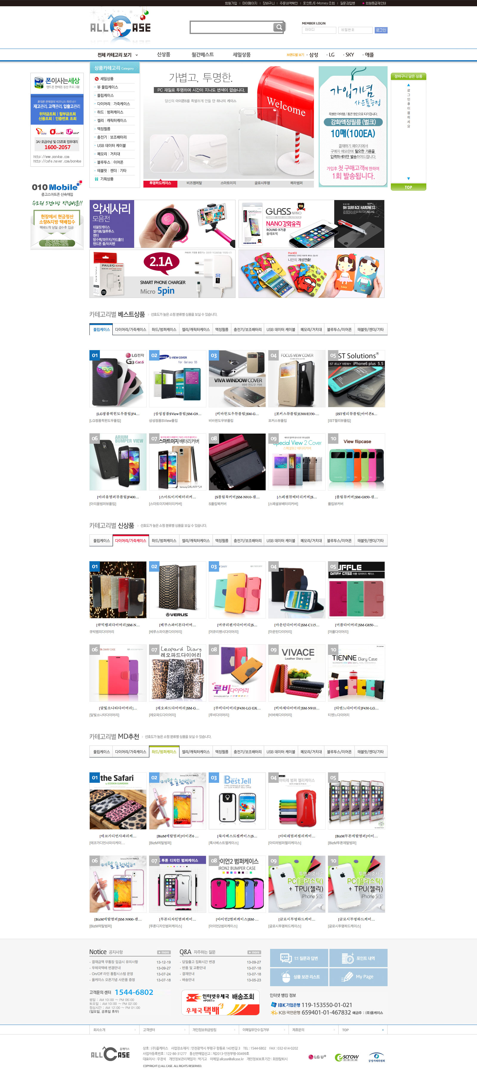 올케이스는 휴대폰 악세사리 도매업체로 오프라인 매장과 온라인 사이트에서 이루어지는 상품재고를 하나로 통합하여 편리한 운영이 가능하도록한 ERP솔루션으로 구축된 ERP 통합쇼핑몰입니다.